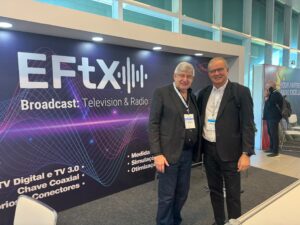 Nas fotos, José Elias da EFTX  com o Sr. Nelson Neto, diretor de Radiodifusão Privada do Ministério das Comunicações, e com Josemar Cruz, co-fundador do Atlantis Tecnologia e membro do ATSC, integrante do time de implementação do ATSC 3.0 para o DTV+ no Brasil.